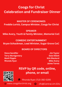 Please join us! For the latest news and events, please follow Coogs for Christ on Facebook and Instagram. If you want to reach out to us to learn more and discover how you can join, please contact us here.